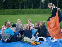 Helga etter skulle vi ha vår tradisjonelle teltovernatting på Fagerlund, men pga ustabilt vær flyttet vi opp i Siljanhallen - igjen! Vi fikk låne stor grill av Lasse Kiste, og siden uværet dro over, brukte vi kvelden til å spille kubb og brettspill på Trollmyra. Det var riktig så idyllisk - helt til sprederen slo seg på! Da ble det fart på jentene, og spill og mygglys, presenning, tepper og soveposer ble rasket sammen. Siden klokka nærmet seg midnatt flyttet vi inn i salongen og forsatte kosen med Alias (som er et veldig morsomt brettspill!), filmen Max Manus, godteri, popcorn og masse latter.